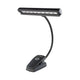 Belysning med armatur för 2 st lampor, 3-ledad arm och skruvklämma.