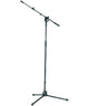 Lågt mikrofonstativ med hopfällbara ben och 2-delad lång bom.