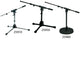 Lågt mikrofonstativ med 2-delad bom och korta, kraftiga ben.