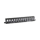 Både bakstycket och frontpanelen är gjord av 1,5 mm tjockt stål, med en svart (RAL 9004) strukturerad pulverlackering. Den avtagbara frontpanelen ger enkel överblick och ett rent intryck, samtidigt som den skyddar anslutning och åtkomst av de installerade modulerna. Blindlock (12 moduler) medföljer.